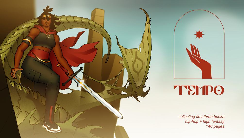 Tempo is a comic set in a world where people get powers from music, Tempo combines elements of Hip-hop and High Fantasy. The story follows a young woman named Baako who gets her Tempo stolen by a famous rapper. She must reclaim what is hers, and along the way create new bonds that will help her on her quest.